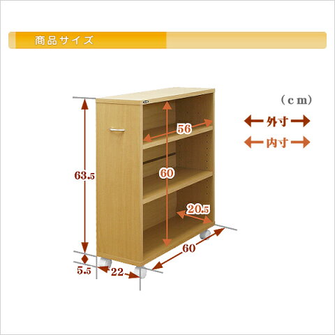 【商品詳細】 ◎外寸:[幅]:60cm [奥行]:22cm [高さ]:69cm(キャスター含む) ◎内寸:[幅]:56cm [奥行]:20.5cm [高さ]:60cm ◎カラー:ナチュラル・ホワイト ◎材質:プリント化粧紙MDF ◎重量:[1台]:7kg [2台合計]:14kg ◎棚板耐荷重:10kg ◎梱包仕様:[梱包数]:1梱包 梱包重量:16kg [梱包サイズ]:67cm×46cm×13cm ◎商品状態:お客様組立商品 ◎生産国:日本 【注意事項】 ◎お客様組み立て商品です。