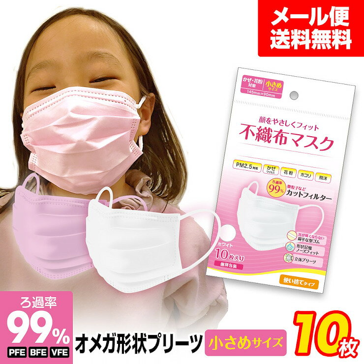 マスク 不織布 子供 個包装 小さめ 10枚入り オメガ形状 プリーツ 使い捨てマスク 子供用 小顔用 親子 小さめサイズ 3層構造フィルター 花粉 ほこり こども用【メール便】【送料無料】