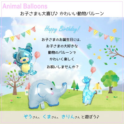 かわいい動物のバルーンが3種類 お子さまに人気の『ぞう』『くま』『きりん』の風船がセットになった、 まるで小さな動物園のようなデコレーション♪