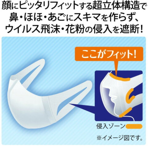 商品に関するお問合せユニ・チャーム株式会社108-8575 東京都港区三田3丁目5番27号<お客様相談ダイヤル >:ベビー用品:0120-192-862生理用品:0120-423-001軽失禁・介護用品(ライフリー):0120-041-062生活用品(化粧パフ・一般ウェットティッシュ・お掃除用品など):0120-573-001衛生用品(マスク):0120-011-529※受付時間:9:30-17:00(月-金曜日、祝日除く)広告文責東盛商事株式会社 EC事業部電話:048-959-9624区分日本製 / 衛生マスク●「スキマを作らず、強力遮断!」毎日使える大容量タイプ●三層構造フィルタと全面フィット構造で「スキマを作らず、強力遮断!」●三層構造の高密度フィルタでウイルス飛沫・花粉をブロック●超立体構造でぴったりフィット●やわらかく、幅が広い不織布耳かけで長時間使用しても耳が痛くない●息ラクフィルタと口元空間で息ラクラク●高い保湿効果でマスク内の湿度を保ち、のどが乾燥しにくい※ノーズフィットはついていません。