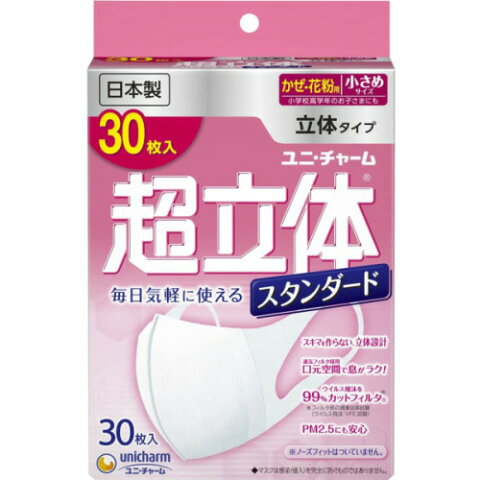 【ユニチャーム】超立体マスク スタンダード 小さめサイズ(30枚入)【4903111960804】※数量限定お一人様一点限り