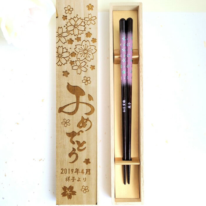 かすみ桜 木箱入り 箸 一膳 お箸 プレゼント 男性 女性 名入れ お祝い 誕生日 メッセージ おしゃれ 名前 祖父 祖母 食洗機 キラキラ メール便 還暦 還暦祝い 彫刻 祝い 名前入り 名入り 送料無料 定年退職 青 ピンク